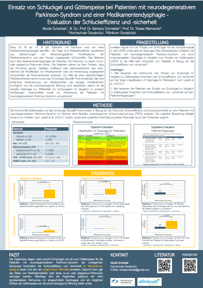 Neben der 90-minütigen Posterpräsentation haben Sie auch die Möglichkeit, sich die Poster in den Pausen zwischen den Vorträgen in Ruhe anzuschauen und mit den Referent*innen dazu ins Gespräch zu kommen. Vielleicht haben Sie ja danach auch ein ganz bestimmtes Poster im Blick und schlagen dieses mit ihrer abgegebenen Stimme in der Kongress-App für den Posterpreis vor? Ob Ihr Favorit dann vielleicht sogar gewonnen hat, erfahren Sie am zweiten Kongresstag, am Samstag, den 24. Mai 2025 um 16:15 Uhr - dann findet im Borgward Saal die Verleihung des Posterpreises statt.