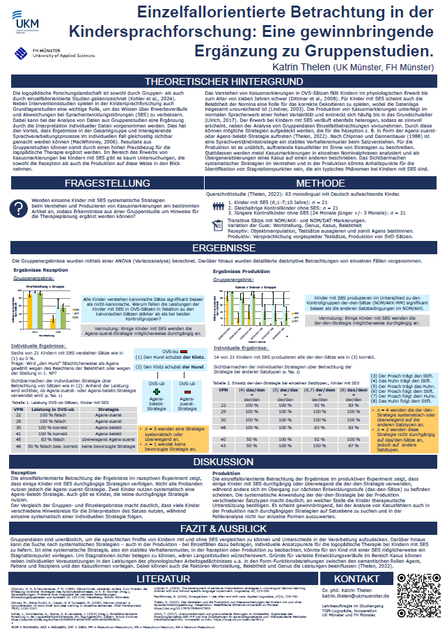Die Posterpräsentation ist jedes Jahr ein beliebtes Format auf dem dbl-Kongress. Kurz und kompakt können Sie sich über die Ergebnisse aktueller logopädischer Forschungsarbeiten, u. a. aus den Fachbereichen Kindersprache, LRS, Stottern, Neurologie, Stimme und Digitalisierung informieren.